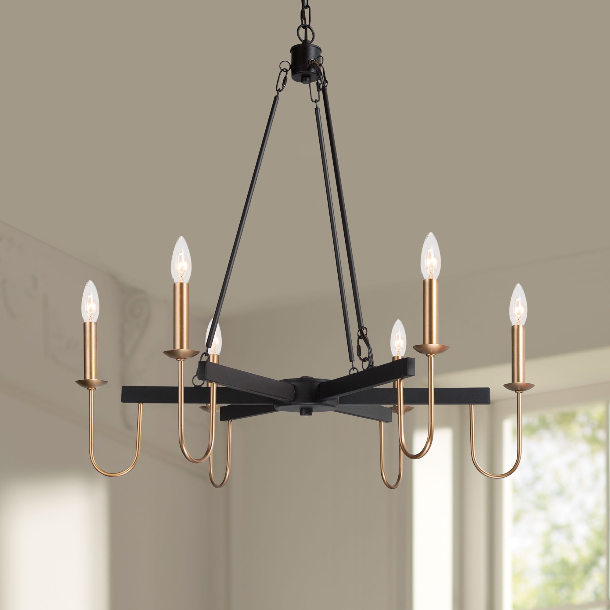 Altris 28" Wide Black and Gold 6-Light Chandelier
