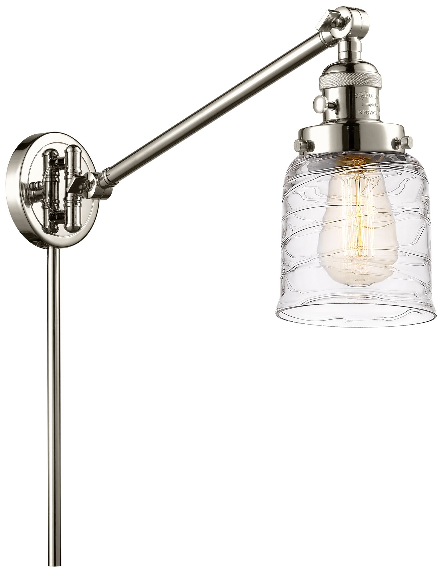 Bell 8" Polished Nickel LED Swing Arm With Deco Swirl Shade
