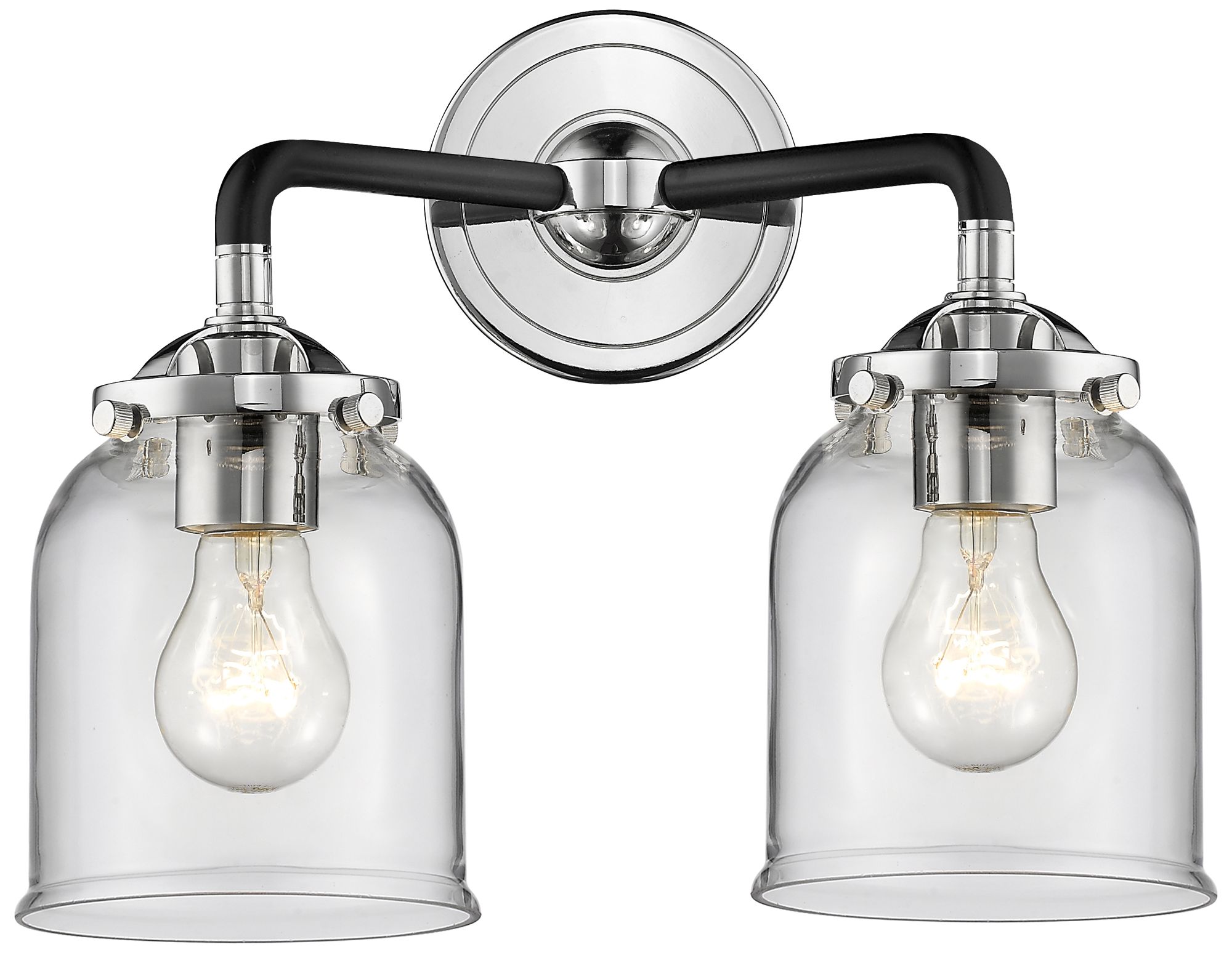 Nouveau Bell 13"W 2 Light Black Polished Nickel Bath Light w/ Clear Sh