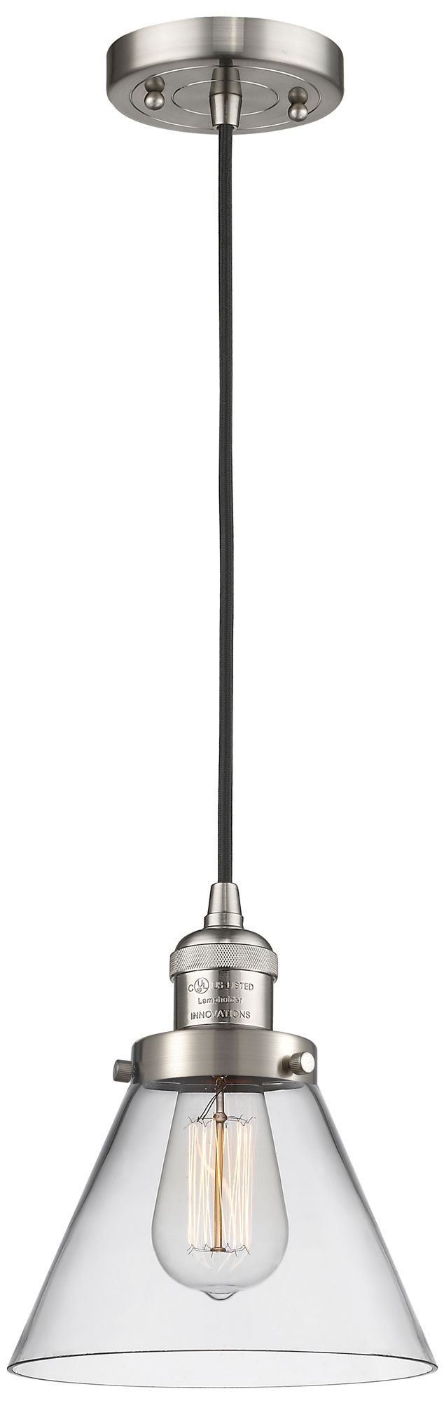 Franklin Cone 8" Brushed Nickel Corded Mini Pendant w/ Clear Shade