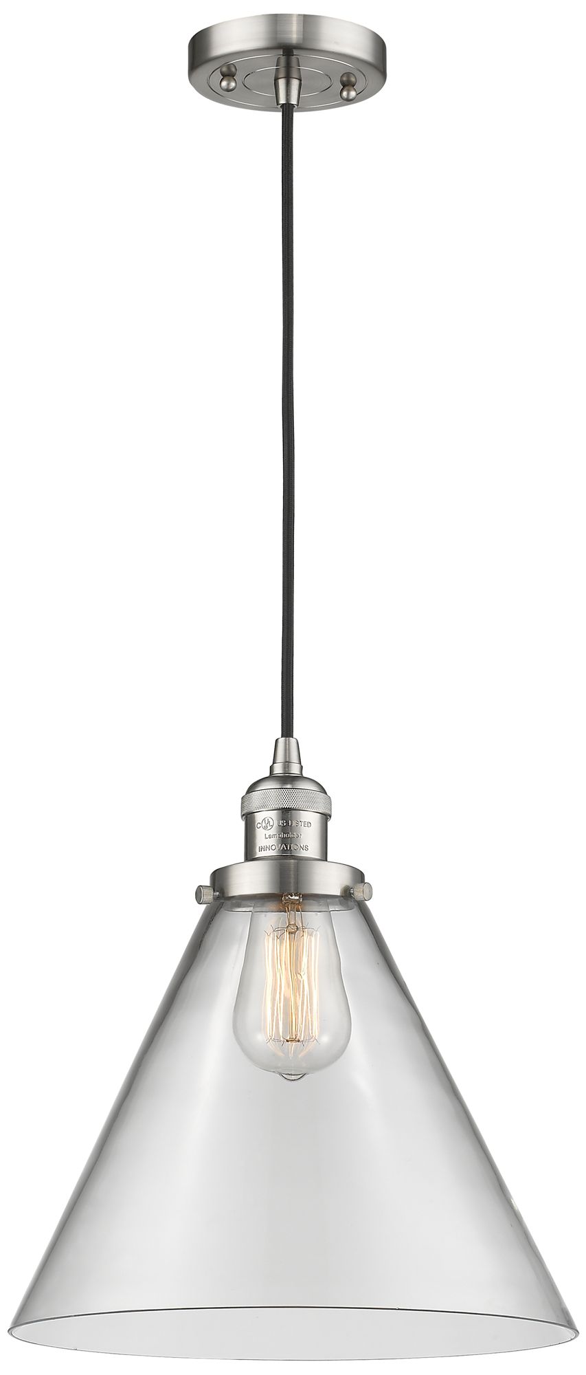 Franklin Cone 12" Brushed Nickel Corded Mini Pendant w/ Clear Shade