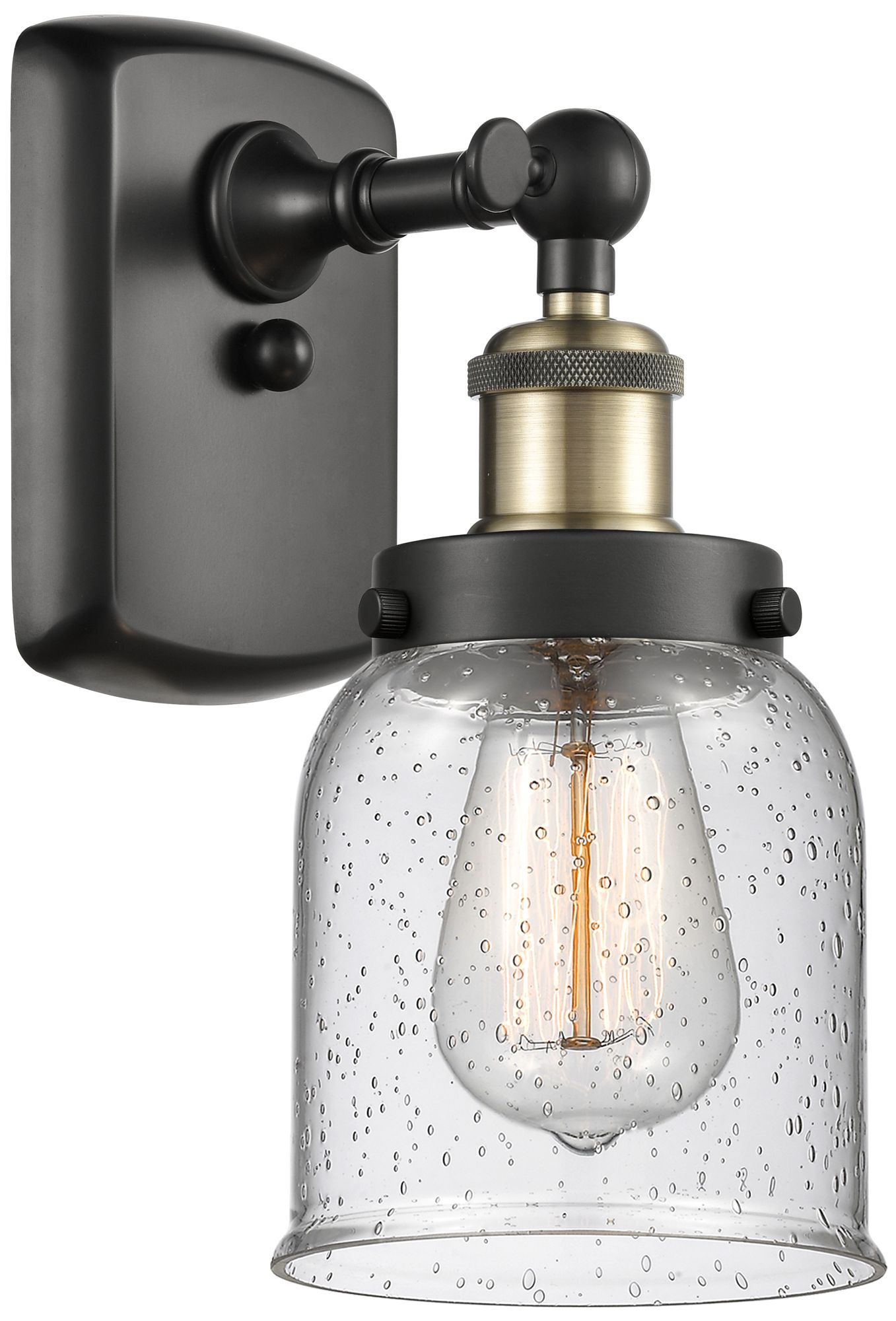 Ballston Urban Bell 12" High Black Brass Sconce w/ Seedy Shade