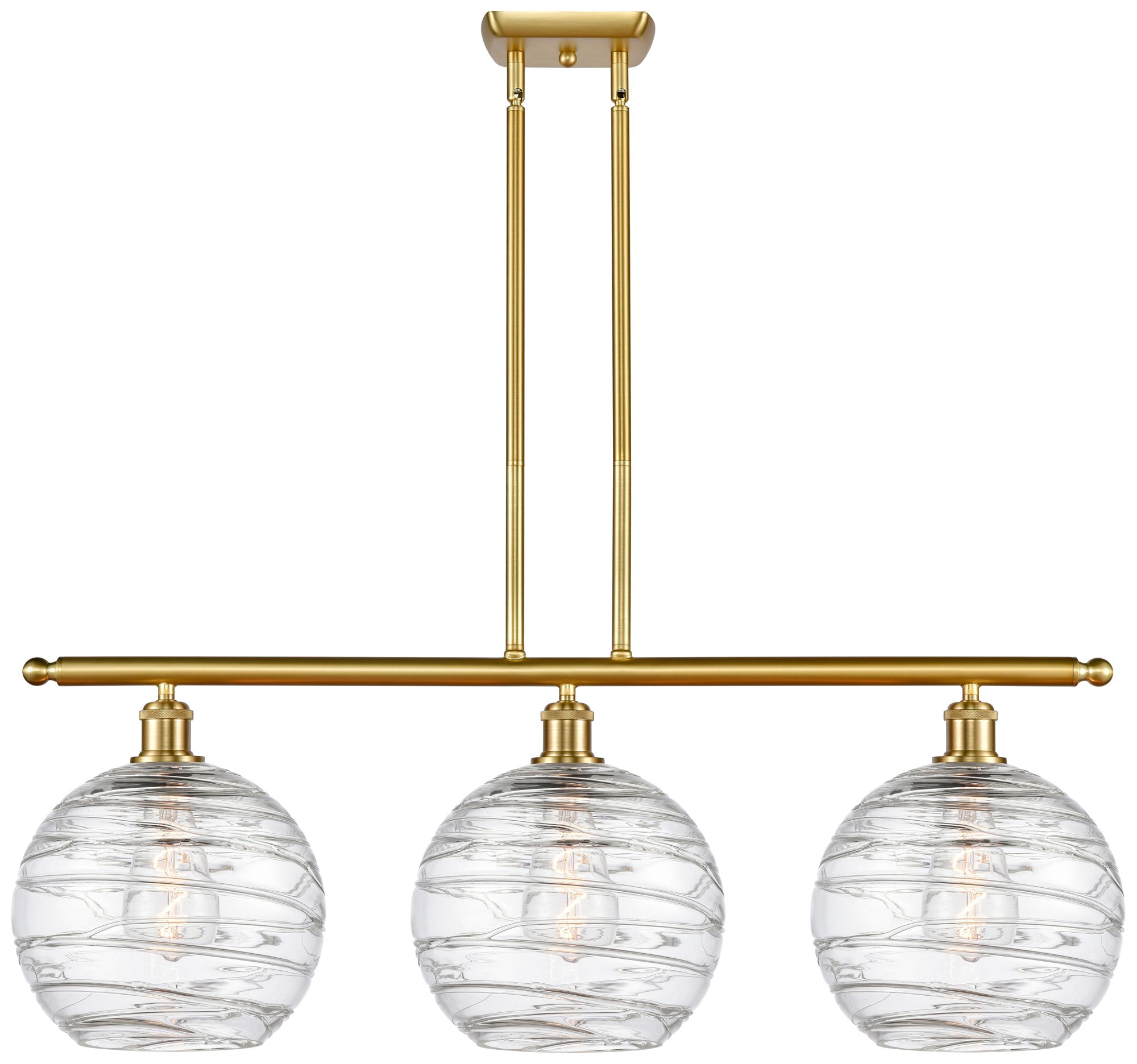 Athens Deco Swirl 3 Light 37" Island Light - Satin Gold - Clear Deco