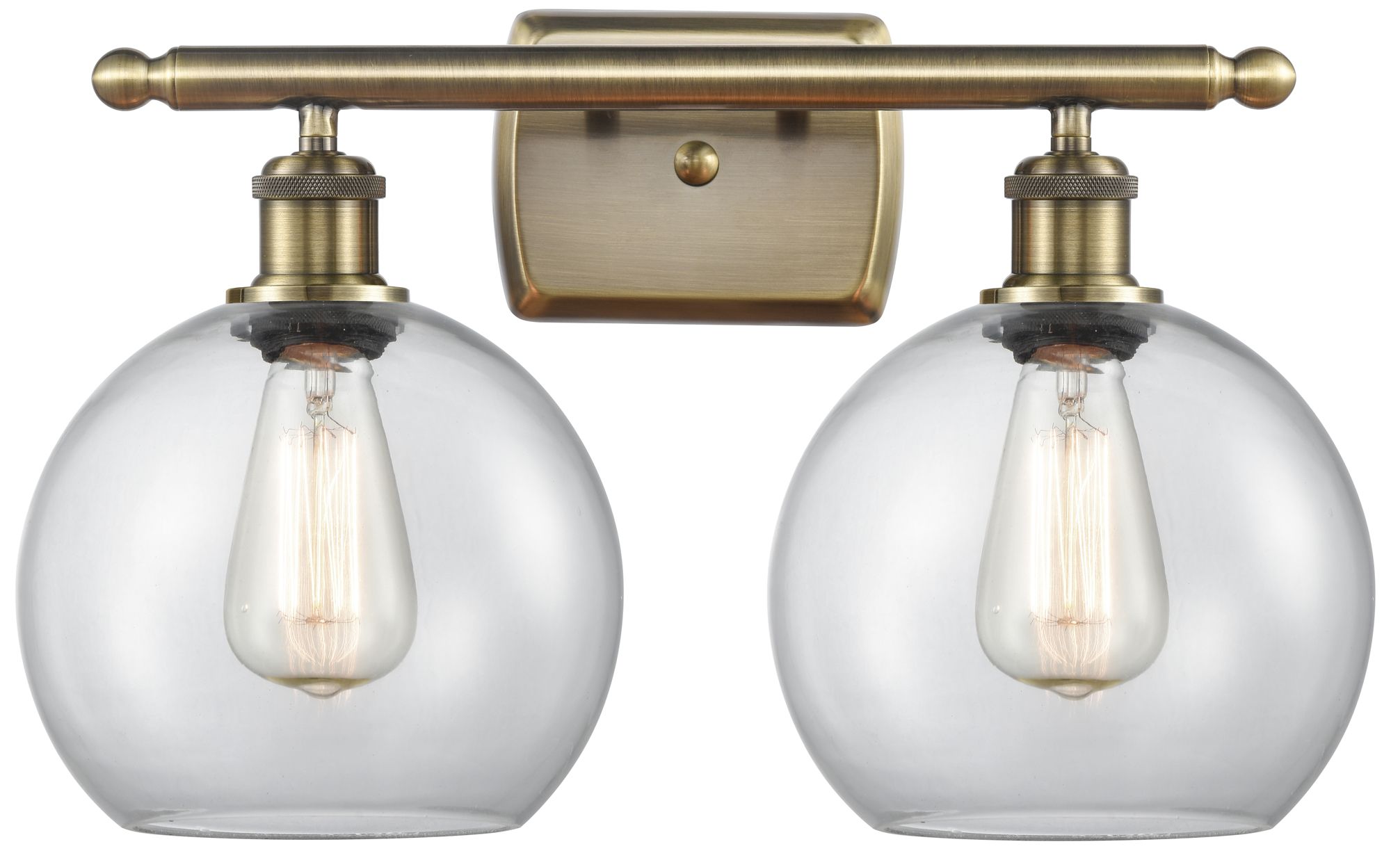 Ballston Athens 8" 2 Light 18" Bath Light - Antique Brass - Clear