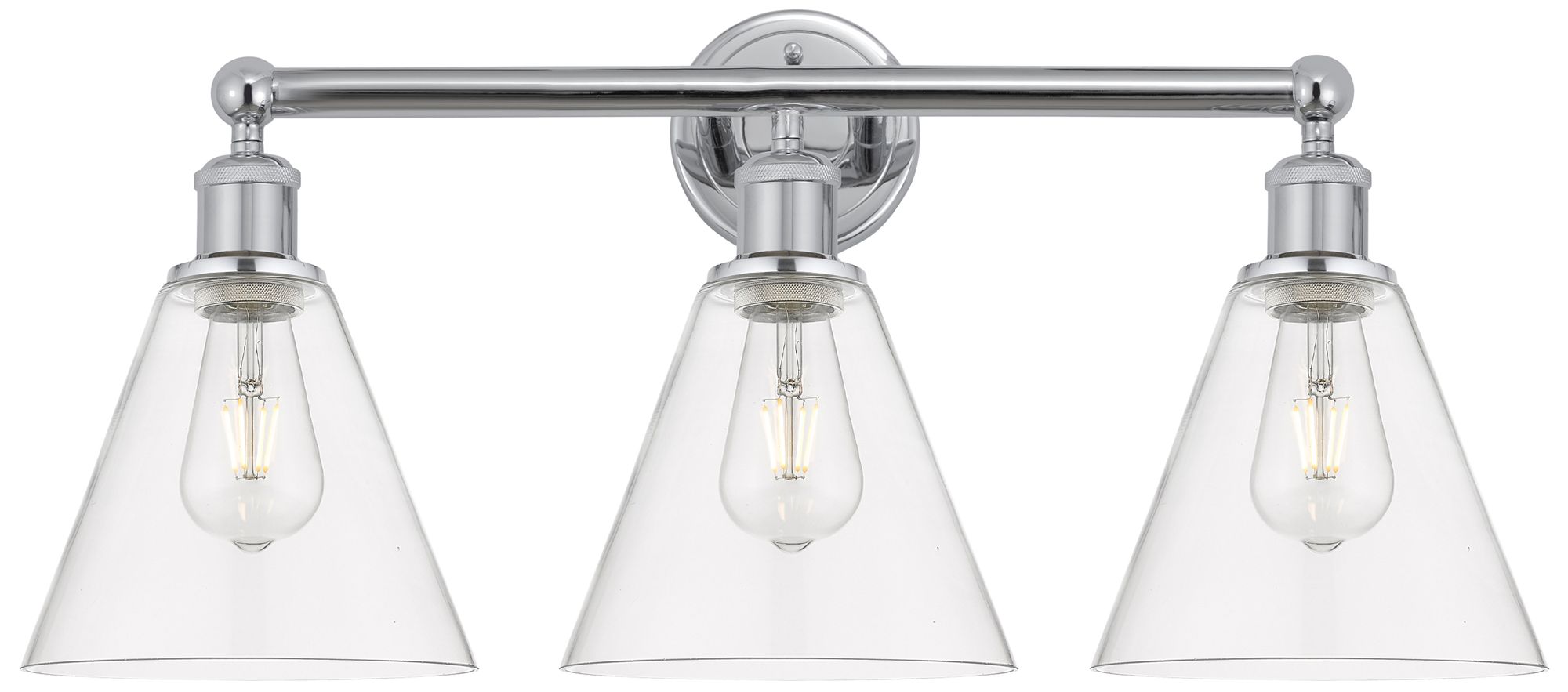 Berkshire 26"W 3 Light Polished Chrome Bath Vanity Light With Clear Sh