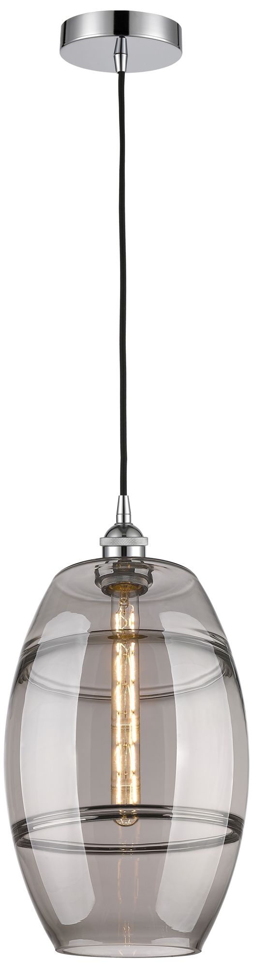 Edison Vaz 10"W Polished Chrome Corded Mini Pendant w/ Light Smoke Sha