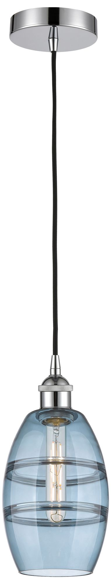Edison Vaz 5.88"W Chrome Corded Mini Pendant w/ Princess Blue Shade