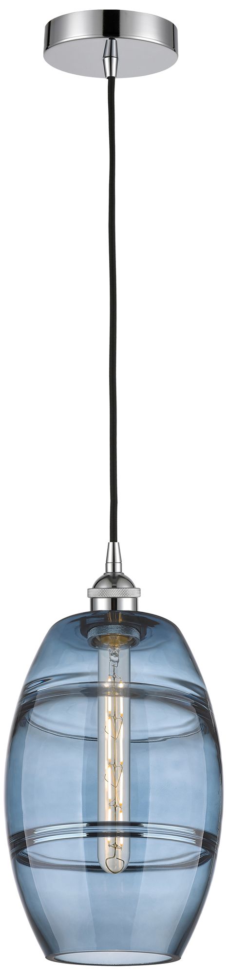 Edison Vaz 8"W Polished Chrome Corded Mini Pendant w/ Princess Blue Sh