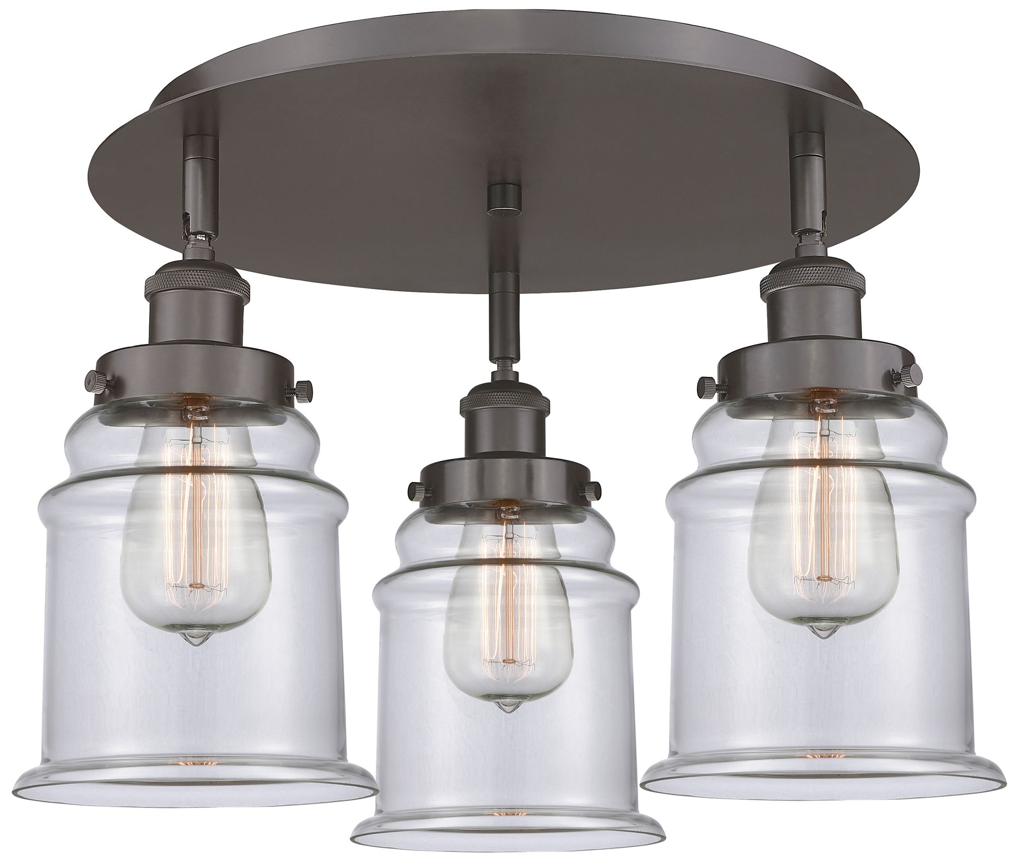 Canton 17.75"W 3 Light Oil Rubbed Bronze Flush Mount With Clear Glass