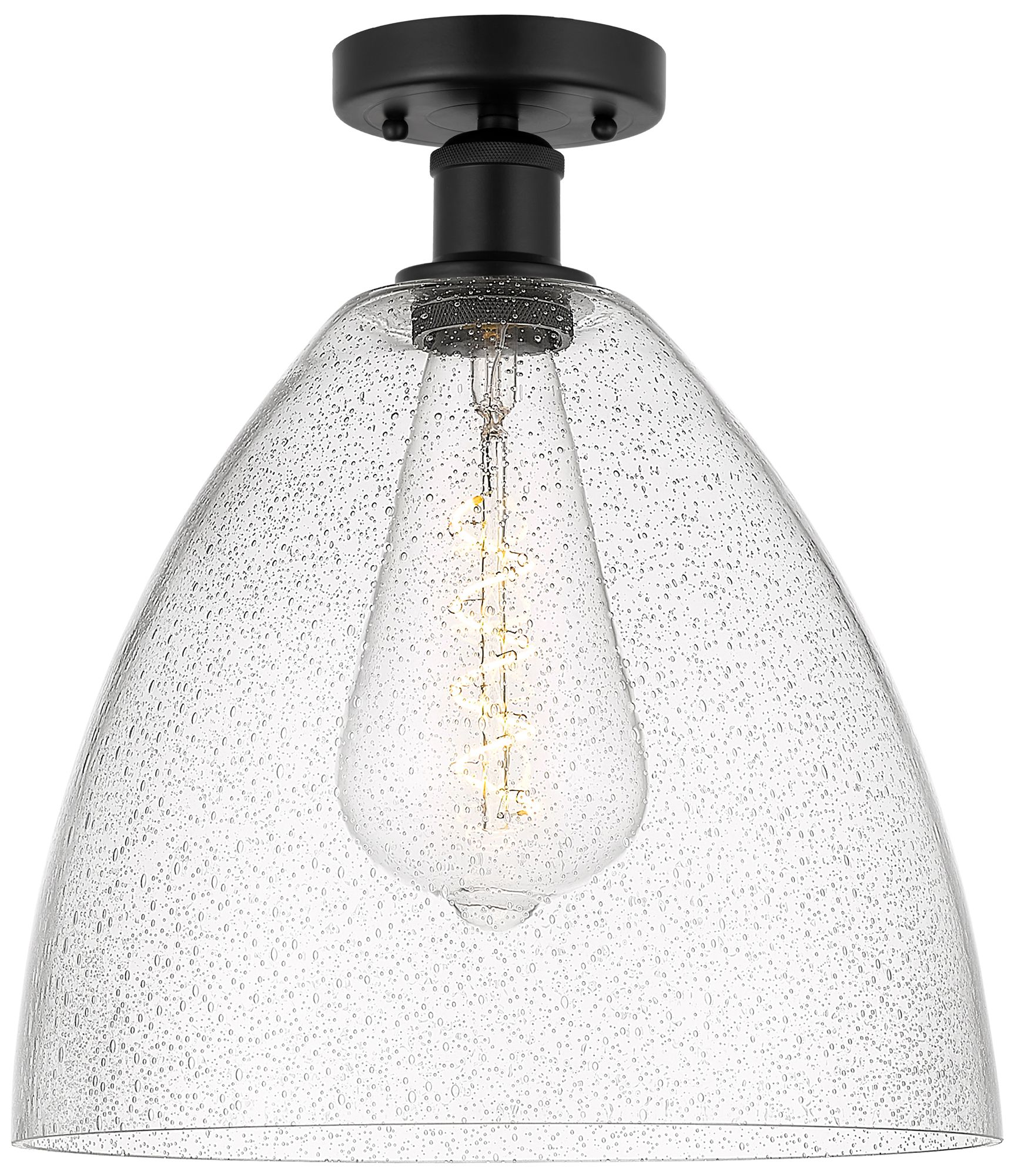 Edison Bristol Glass 12" Semi-Flush Mount - Matte Black - Seedy Shade