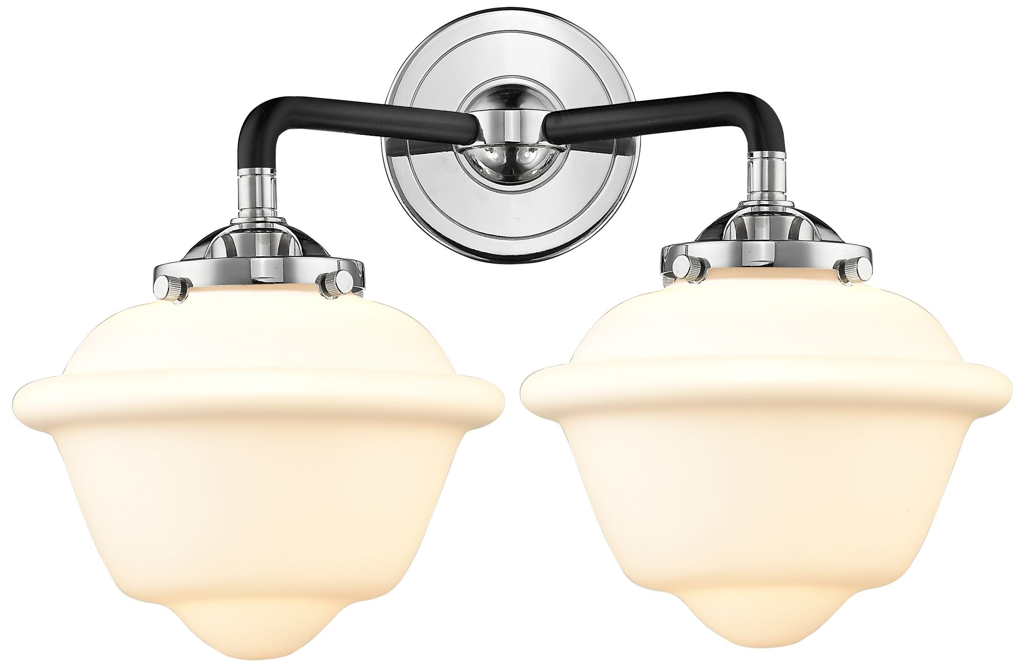 Nouveau Oxford 15.5"W 2 Light Black Nickel Bath Light w/ White Shade