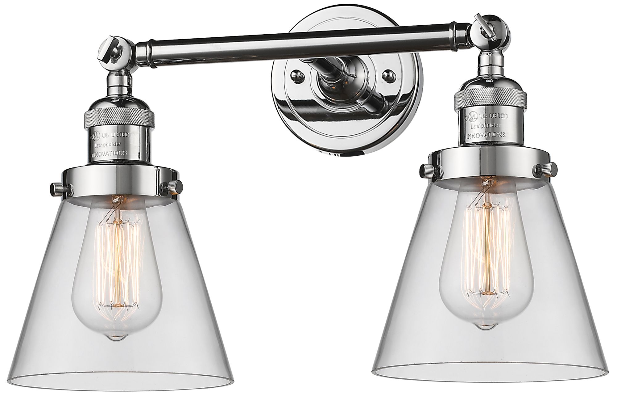 Small Cone 16" 2-Light Polished Chrome Tiltable Bath Light w/ Clear Sh