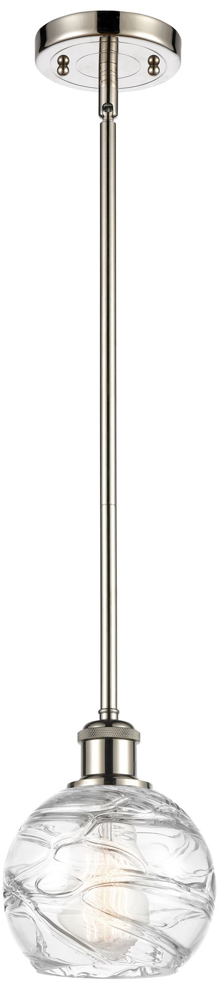 Athens 6" Polished Nickel Stem Hung Mini Pendant w/ Clear Deco Swirl S