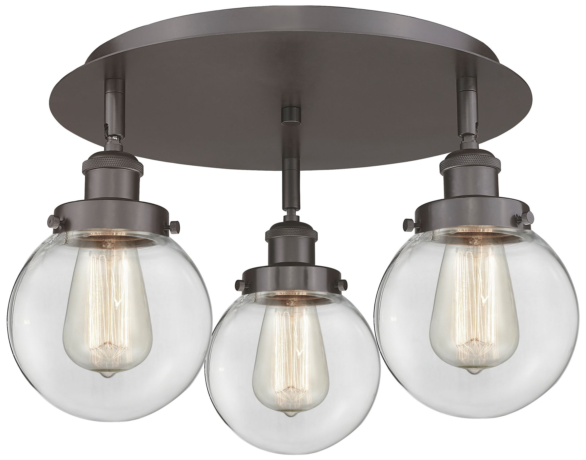 Beacon 17.75"W 3 Light Oil Rubbed Bronze Flush Mount With Clear Glass