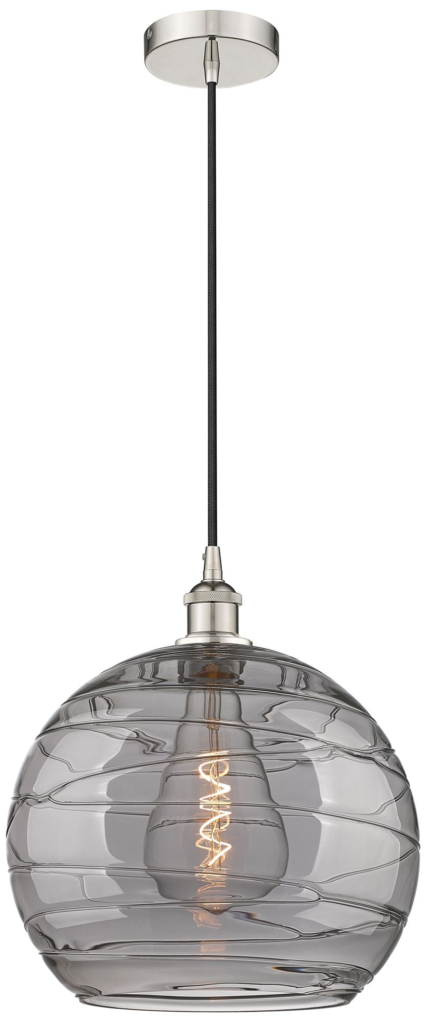 Edison Athens 13.75"W Polished Nickel Corded Pendant w/ Smoke Swirl Sh