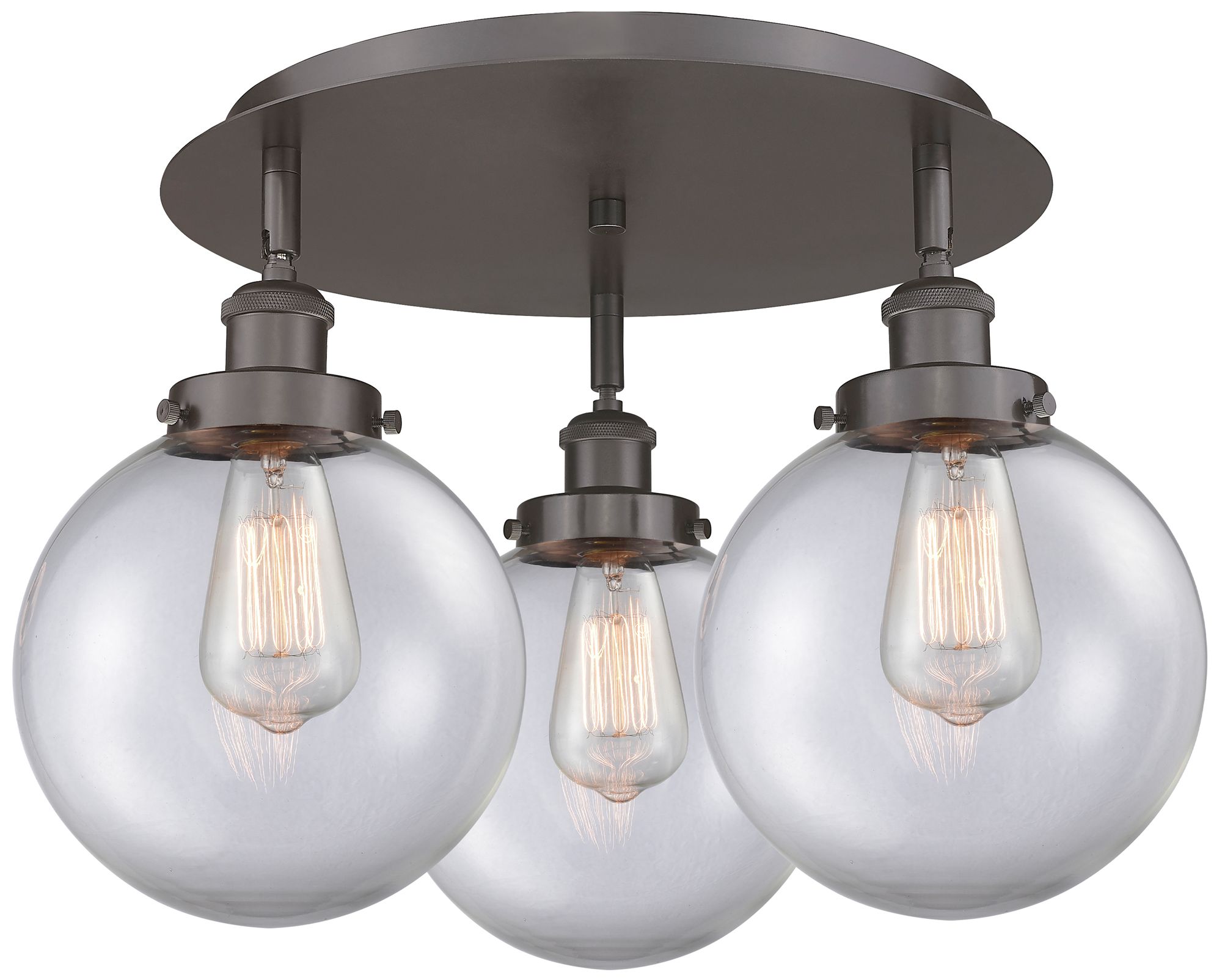 Canton 19.75"W 3 Light Oil Rubbed Bronze Flush Mount With Clear Glass