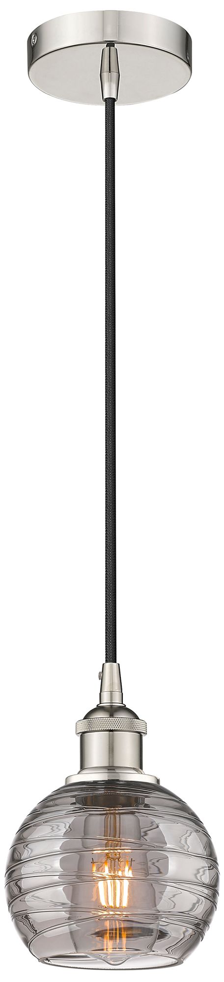 Edison Athens 5.88"W Polished Nickel Cord Mini Pendant w/ Smoke Swirl