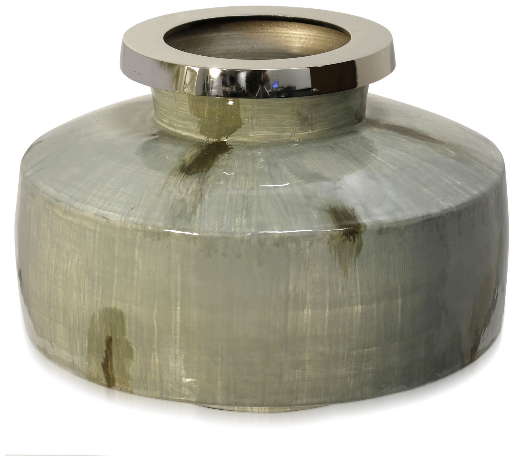 Florintini 13" Wide Distressed Light Olive Hand Painted Canister