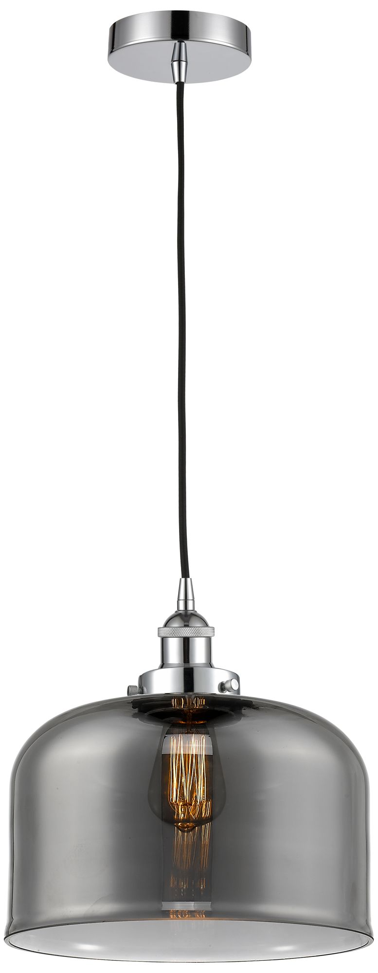Bell 12" Polished Chrome Mini Pendant w/ Plated Smoke Shade