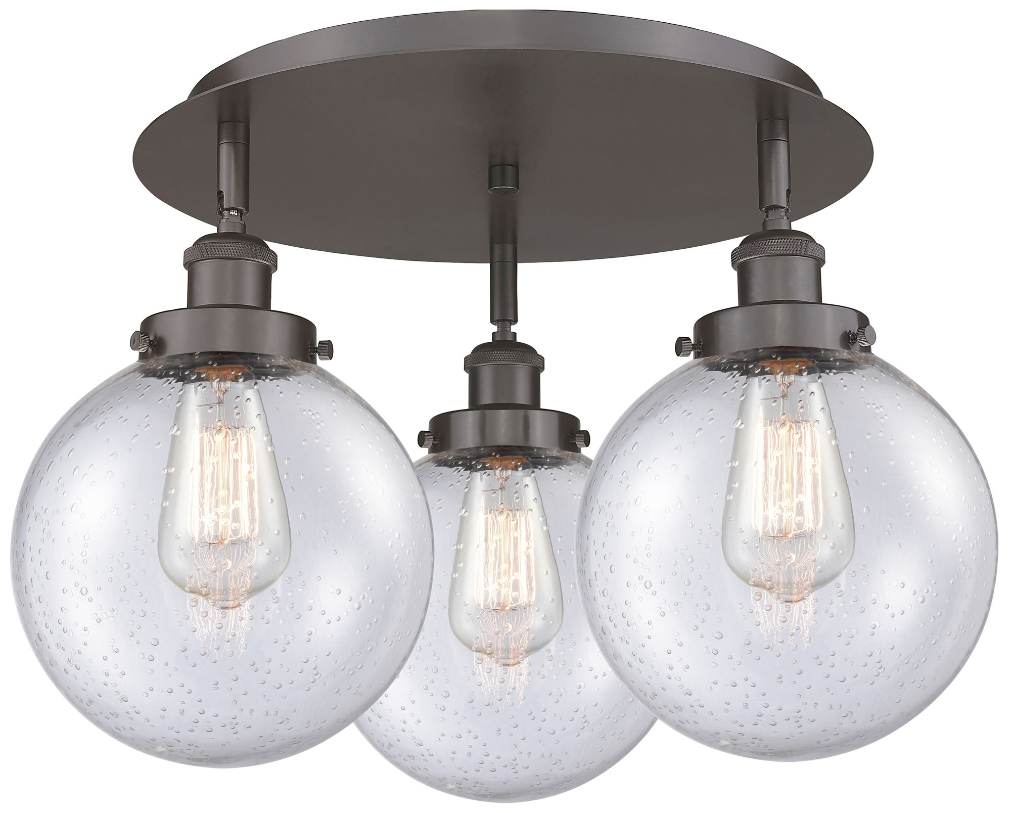 Canton 19.75"W 3 Light Oil Rubbed Bronze Flush Mount With Seedy Glass