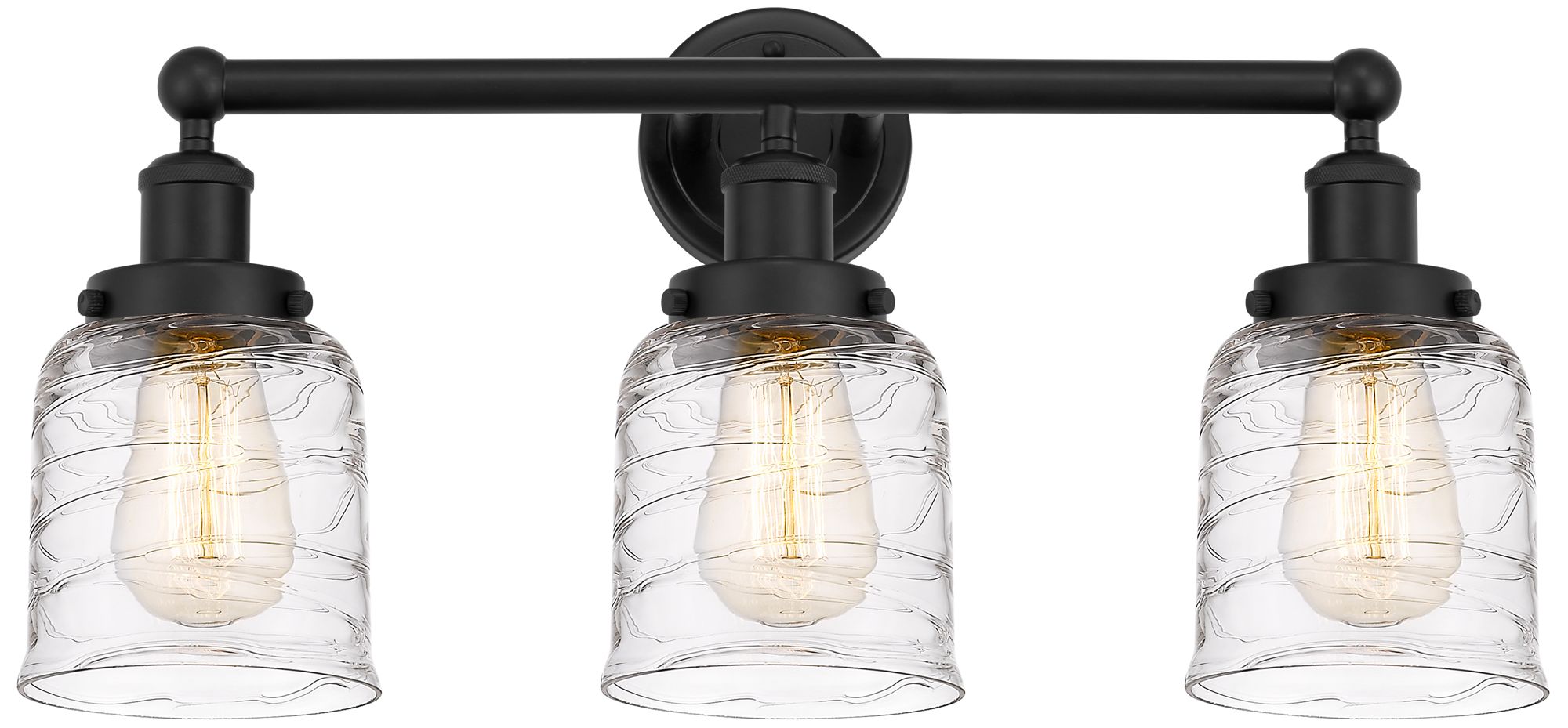 Edison Small Bell 25" 3-Light Matte Black Bath Light w/ Deco Swirl Sha