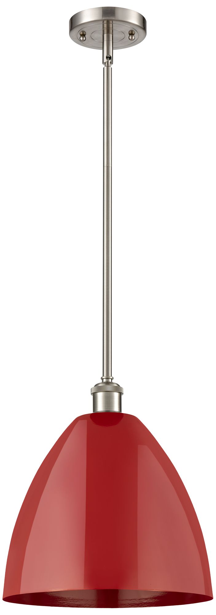 Plymouth Dome 12" Wide Brushed Satin Nickel Stem Hung Pendant w/ Red S