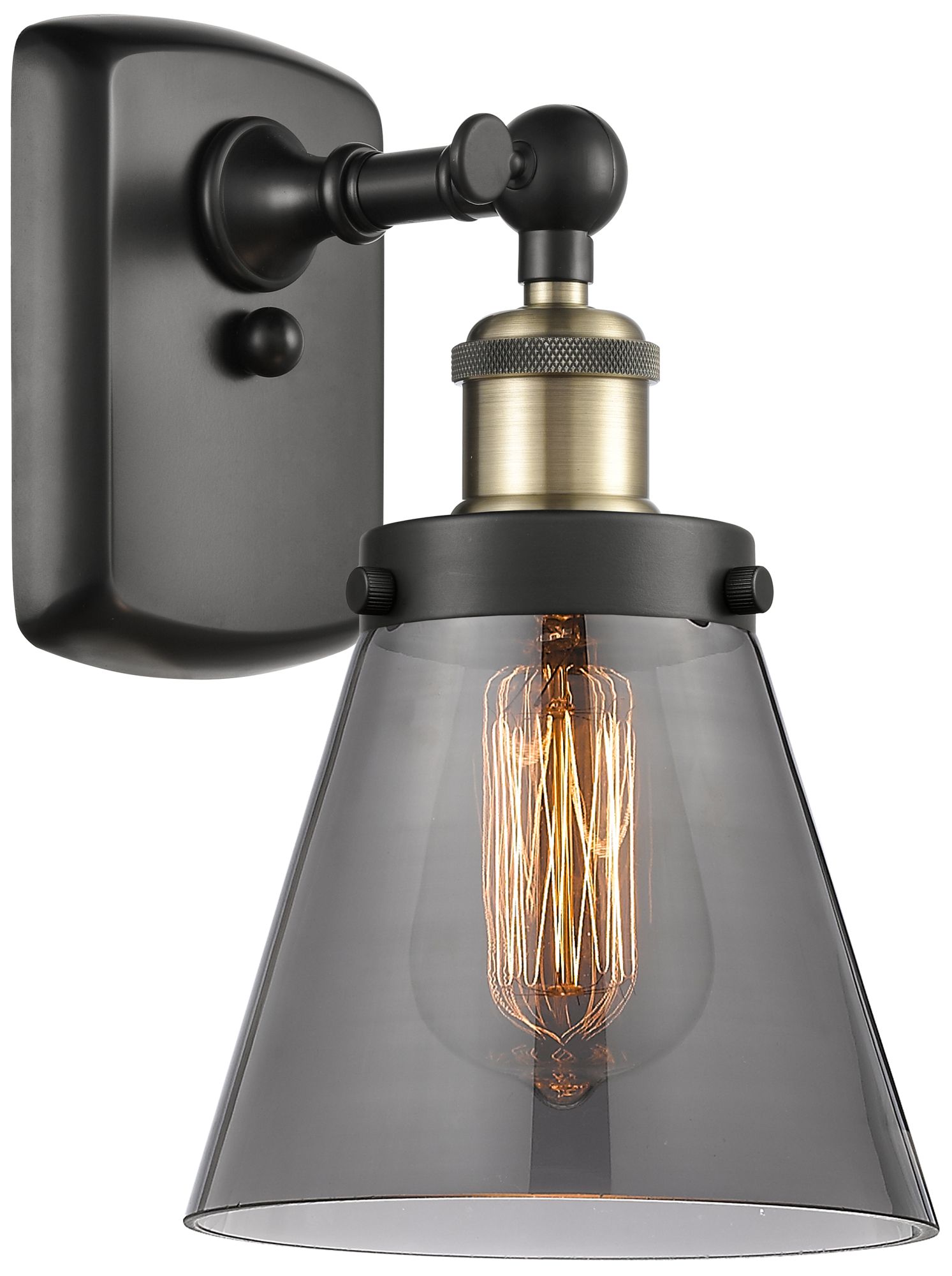 Ballston Urban Cone 11" High Black Brass Sconce w/ Plated Smoke Shade