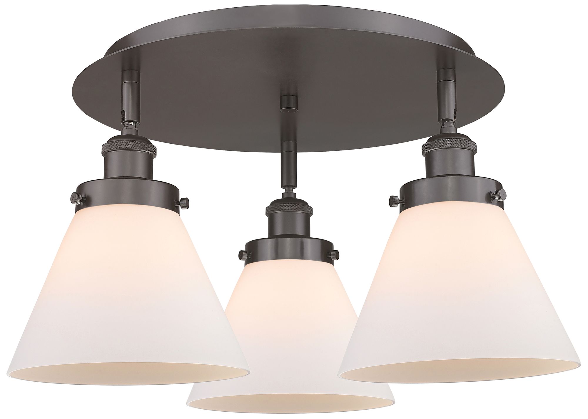 Cone 19.5"W 3 Light Oil Rubbed Bronze Flush Mount w/ White Shade