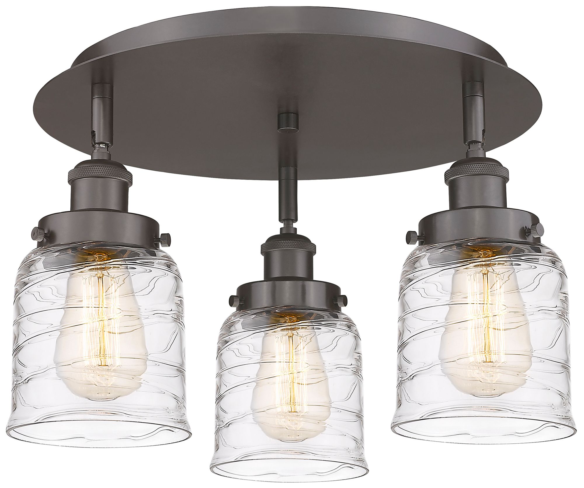 Bell 16.75"W 3 Light Oil Rubbed Bronze Flush Mount w/ Deco Swirl Shade