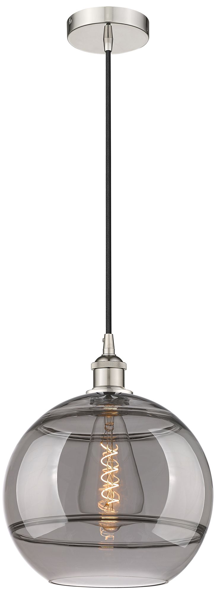 Edison Rochester 12"W Polished Nickel Corded Mini Pendant w/ Smoke Sha