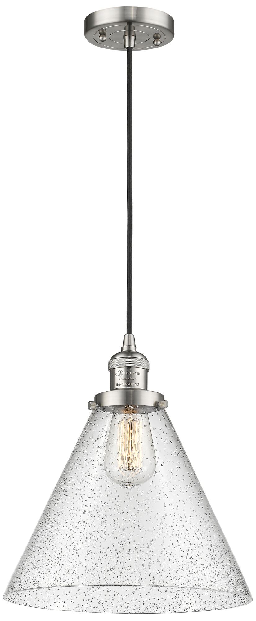 Franklin Cone 12" Brushed Nickel Corded Mini Pendant w/ Seedy Shade