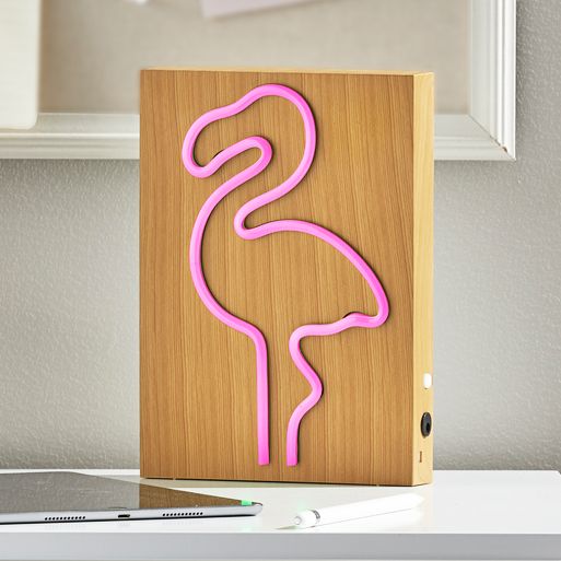 Neon 9" High Wood Framed Flamingo LED Accent Table Lamp
