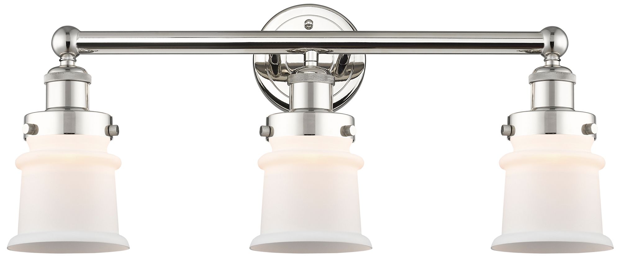 Canton 23.25"W 3 Light Polished Nickel Bath Vanity Light With White Sh