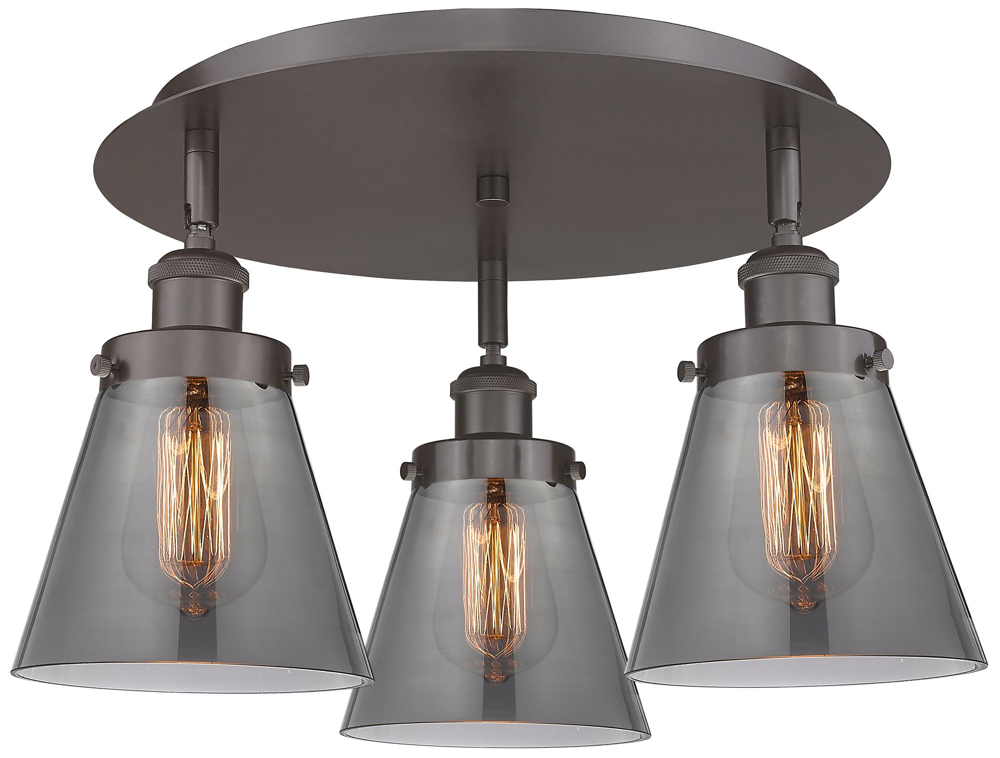 Cone 18"W 3 Light Oil Rubbed Bronze Flush Mount w/ Plated Smoke Glass