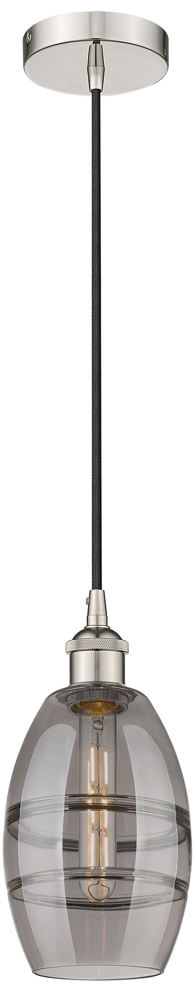 Edison Vaz 5.88"W Polished Nickel Corded Mini Pendant w/ Light Smoke S