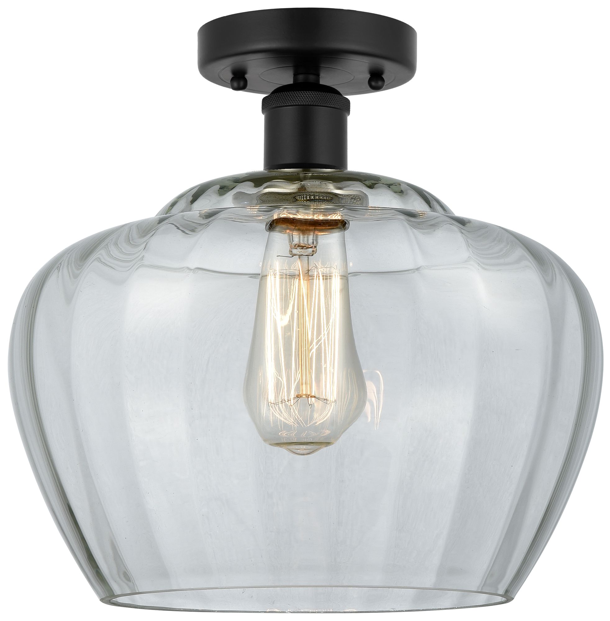 Edison Fenton 11" Matte Black Semi Flush Mount w/ Clear Shade
