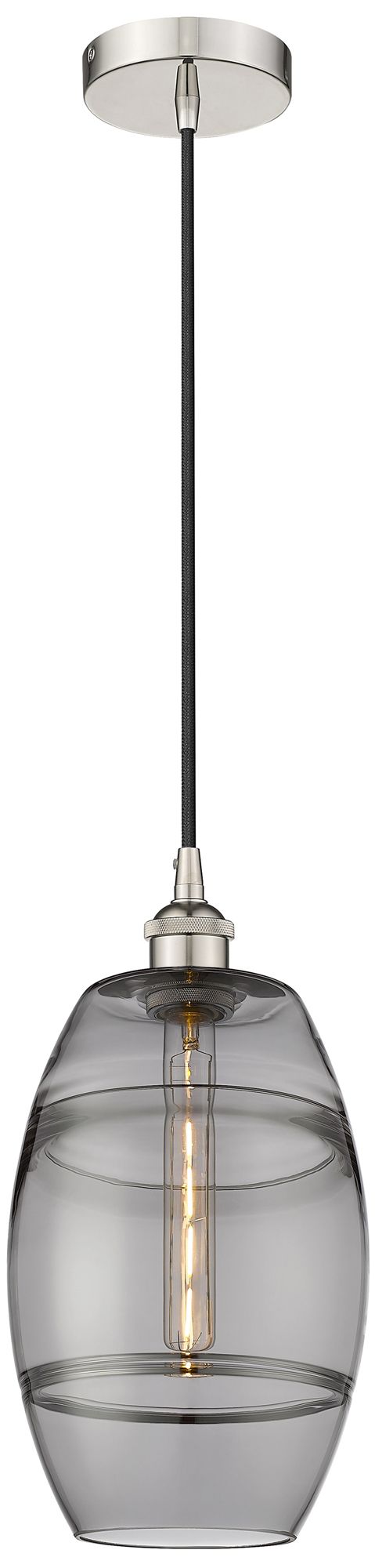 Edison Vaz 8" Wide Polished Nickel Corded Mini Pendant w/ Light Smoke