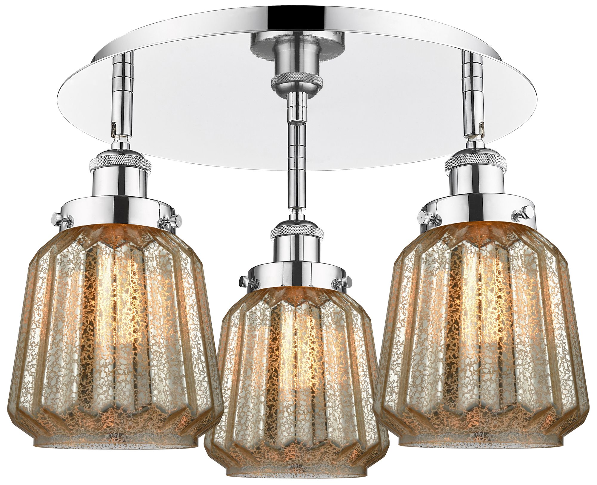 Chatham 18.25"W 3 Light Polished Chrome Flush Mount w/ Mercury Glass S