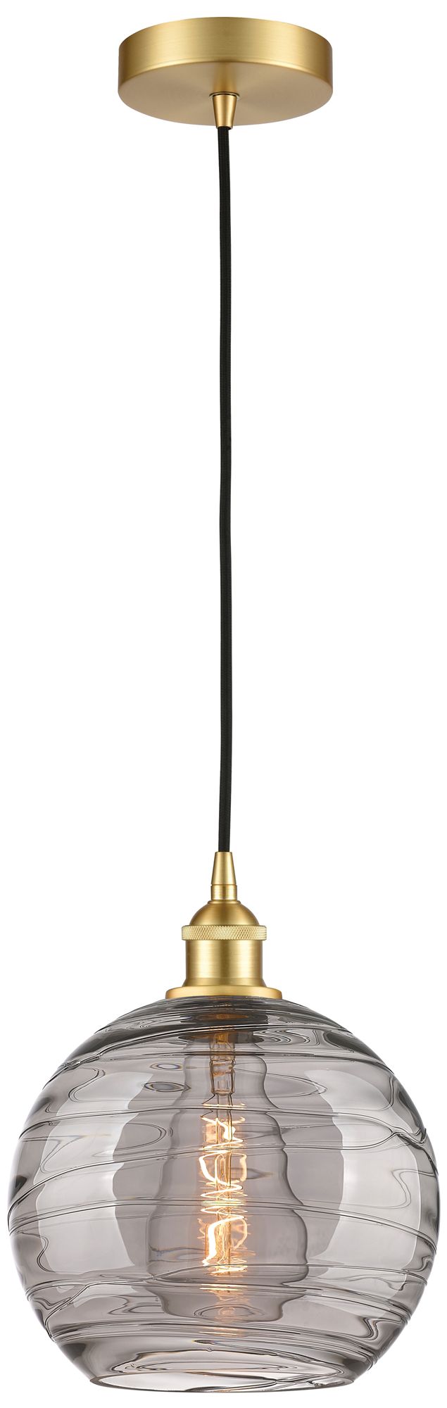 Edison Athens 10"W Satin Gold Corded Mini Pendant w/ Smoke Swirl Shade