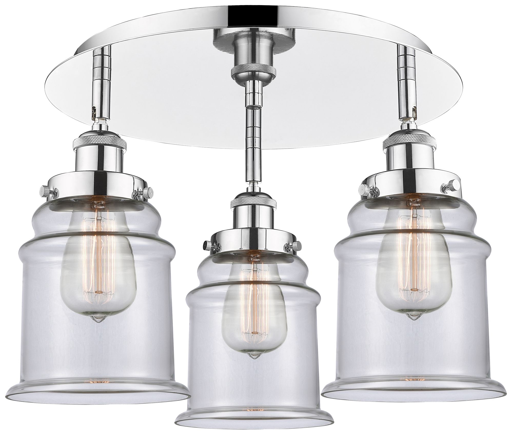 Canton 17.75"W 3 Light Polished Chrome Flush Mount With Clear Glass Sh