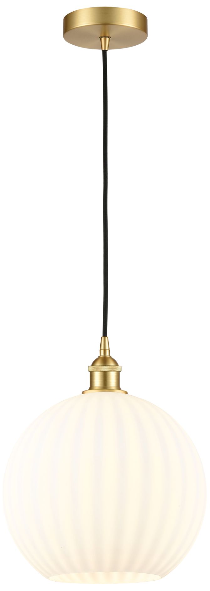 Edison 12" Wide Satin Gold Cord Hung Pendant With White Venetian Shade
