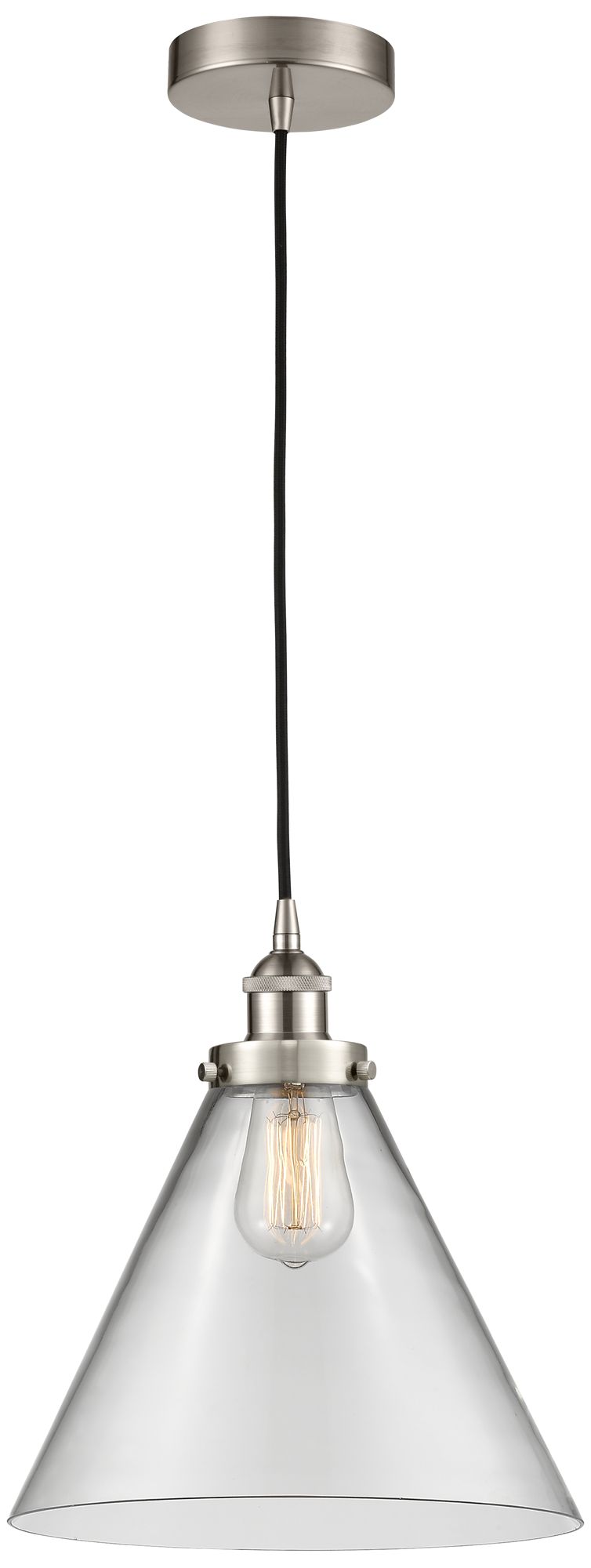 Cone 12" LED Mini Pendant - Brushed Satin Nickel - Clear Shade