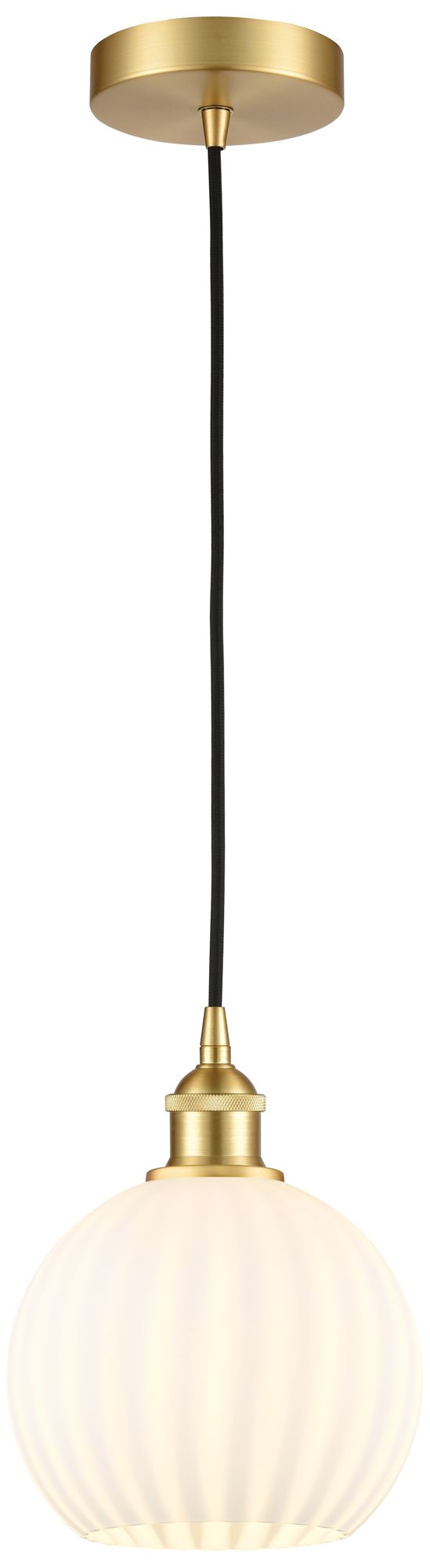 Edison 8" Wide Satin Gold Cord Hung Mini Pendant With White Venetian S