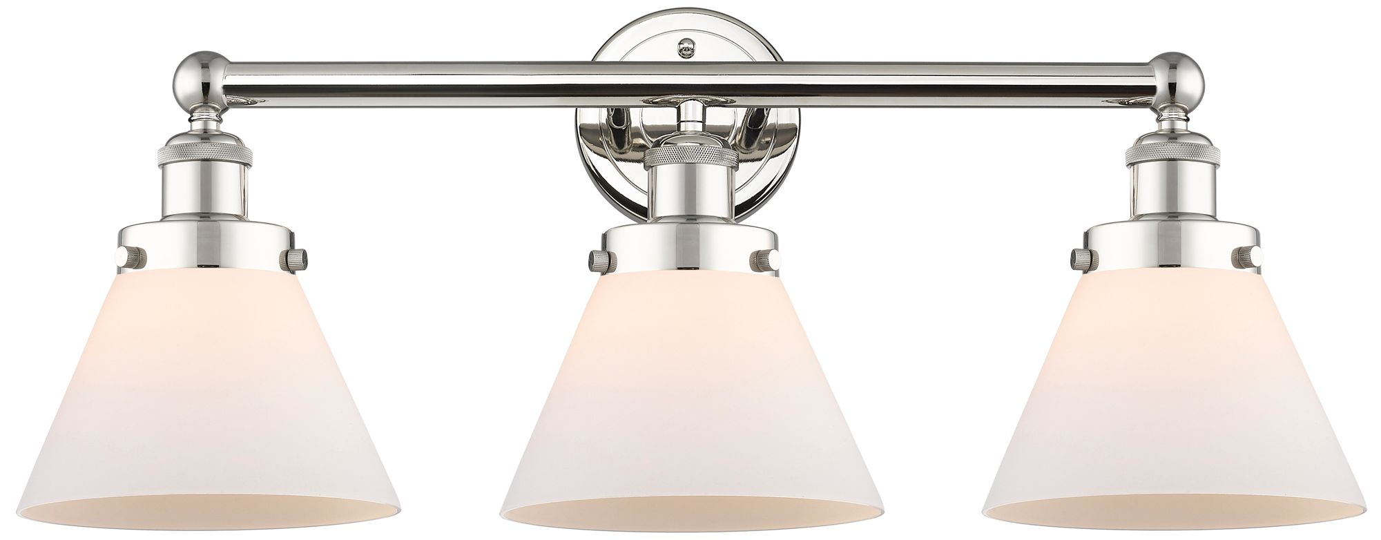 Edison Cone 25.75"W 3 Light Polished Nickel Bath Light With White Shad
