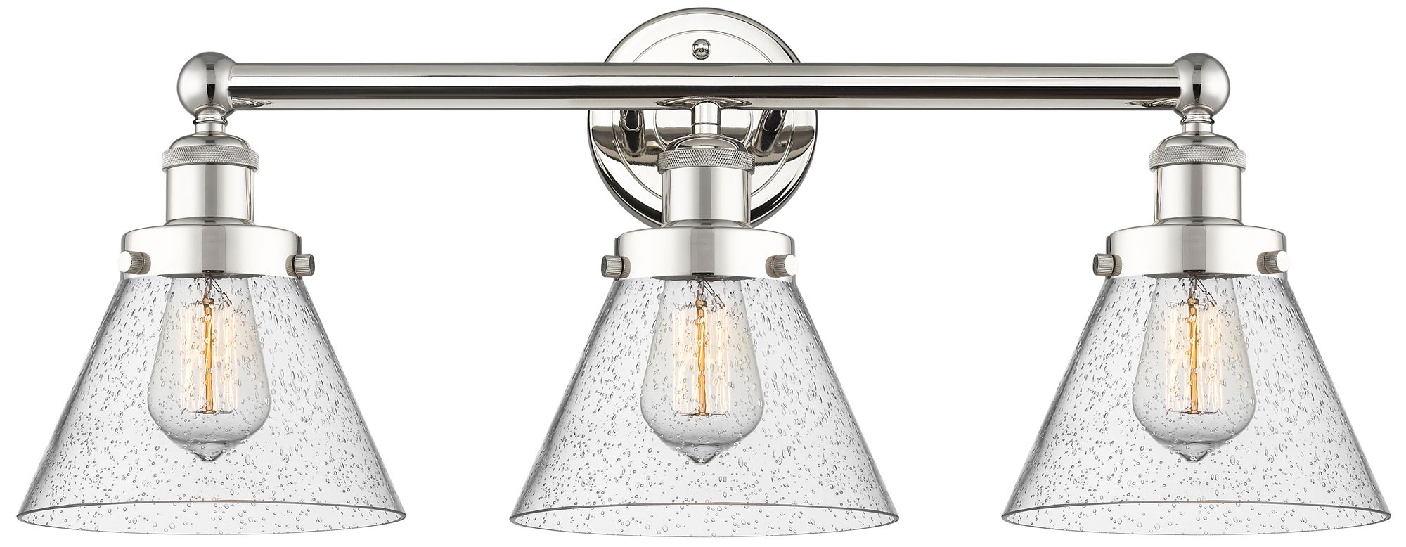 Edison Cone 24.5"W 3 Light Polished Nickel Bath Light With Seedy Shade