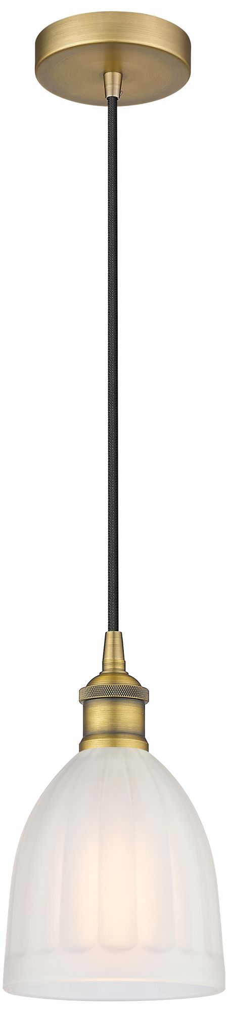 Edison Brookfield 6" Brushed Brass Cord Hung Mini Pendant w/ White Sha