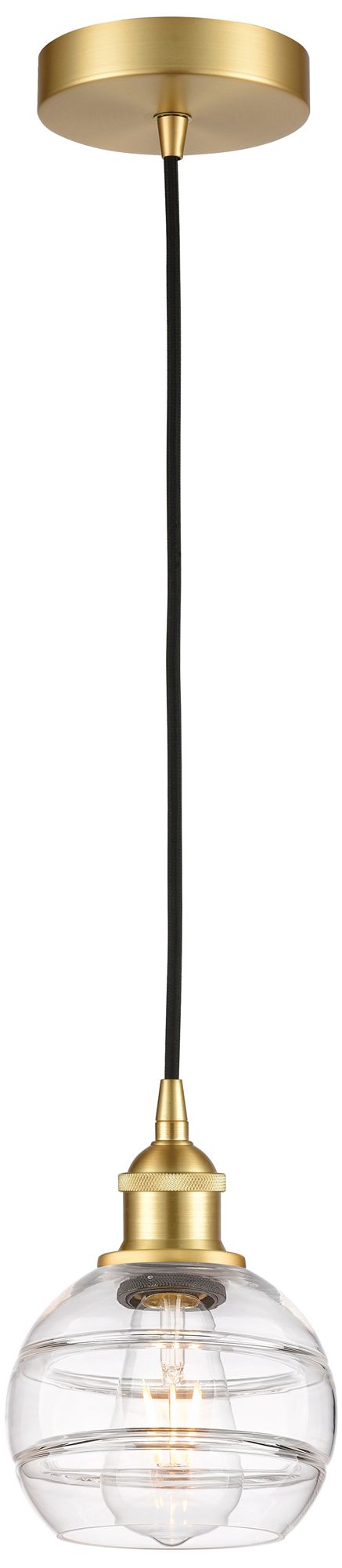 Edison Rochester 5.88" Wide Satin Gold Corded Mini Pendant w/ Clear Sh