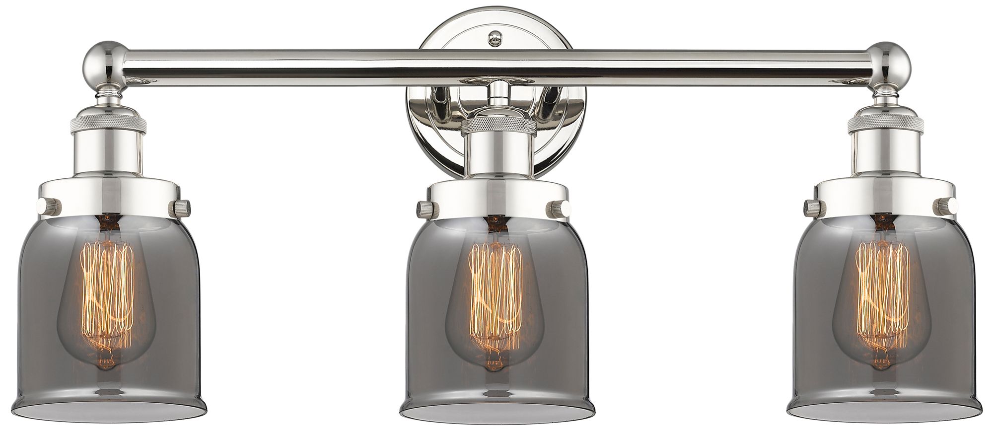 Edison Small Bell 24.5"W 3 Light Polished Nickel Bath Light w/ Smoke S