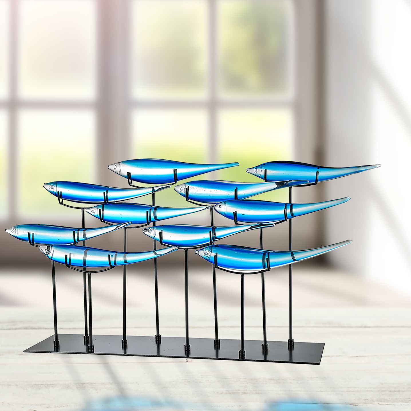 Dale Tiffany 19" Tall 10 Blue Fish Handcrafted Art Glass Figurines