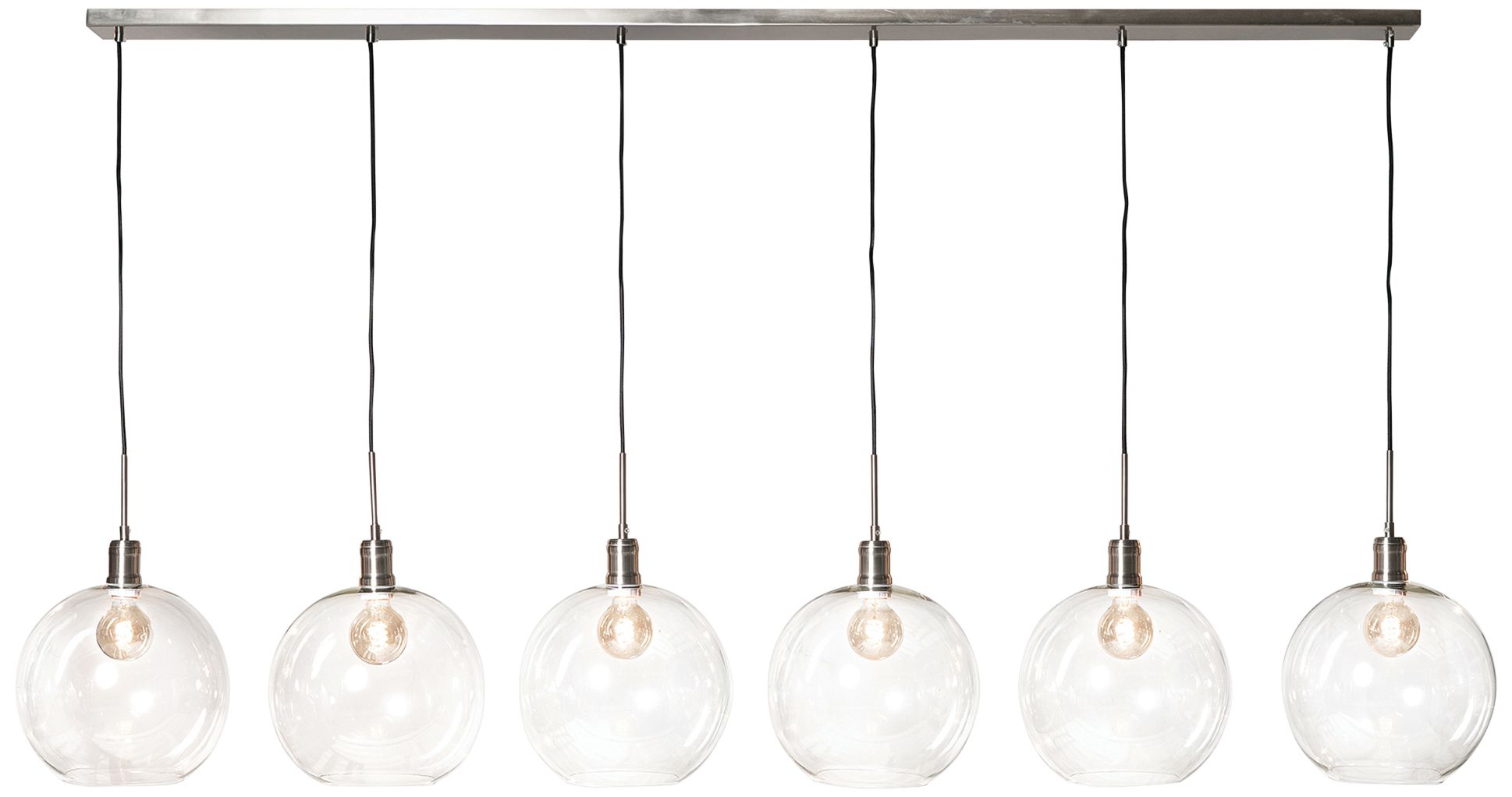 Luca 80.4" Wide 6 Light Nickel Pendant With Clear Glass Globe Shades